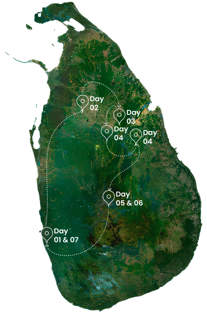 This itinerary offers a meaningful exploration of Sri Lanka’s cultural treasures, sacred sites, and living traditions. Begin in Colombo with a glimpse of colonial heritage before travelling to Anuradhapura, where centuries-old stupas and the holy Bodhi tree reveal the island’s spiritual legacy. Village experiences in Habarana provide authentic connections with local communities through cooking and cultural activities. The journey continues to Sigiriya and Polonnaruwa, where ancient fortresses and royal ruins showcase the brilliance of Sri Lanka’s past. In Kandy, traditions come alive through vibrant performances, temple visits, and serene strolls along the lakeside. A balance of history, spirituality, and community encounters ensures a deeply enriching travel experience.