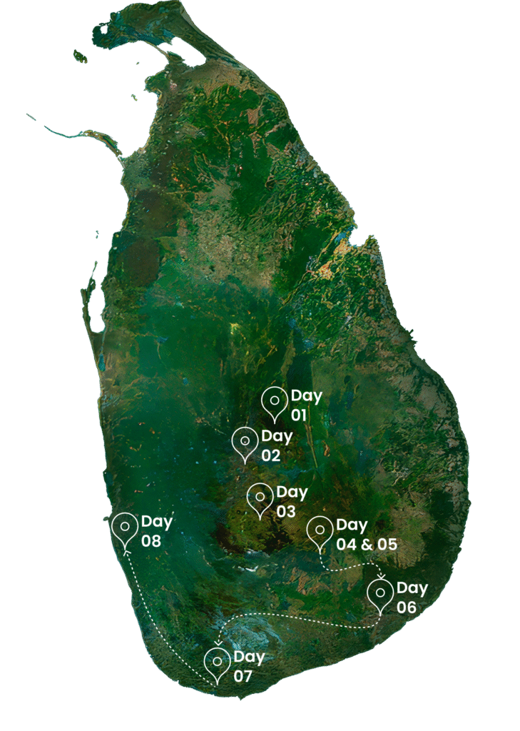 Start the day with a whale watching excursion off Mirissa. Relax on the beach before checking out. Transfer back to Colombo for your onward journey. Reflect on the diverse landscapes and wildlife experiences from the trip.